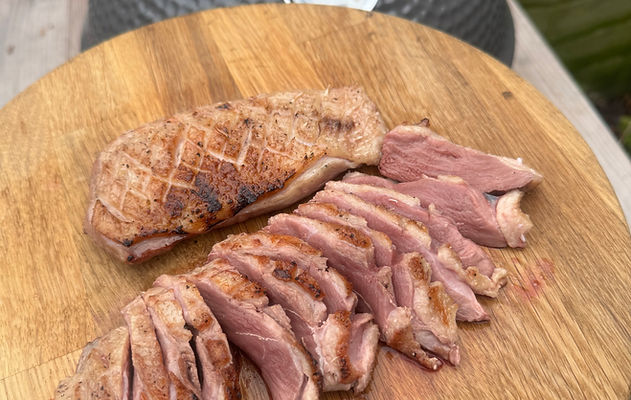 Door de combinatie van direct en indirect grillen krijgt de eendenborst een krokante vetlaag en blijft het vlees heerlijk sappig. Rookhout voegt een extra laag smaak toe.