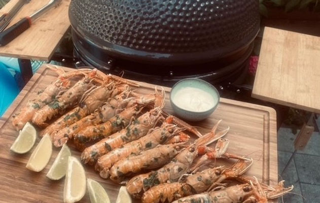 Deze langoustines zijn gemarineerd in een heerlijke mix van olijfolie, knoflook, chilivlokken, bieslook, en peterselie en worden gegrild op de BBQ voor een rokerige, smaakvolle afwerking. Het is een snel en smaakvol gerecht dat perfect is voor een zomerse BBQ of een feestelijke gelegenheid.